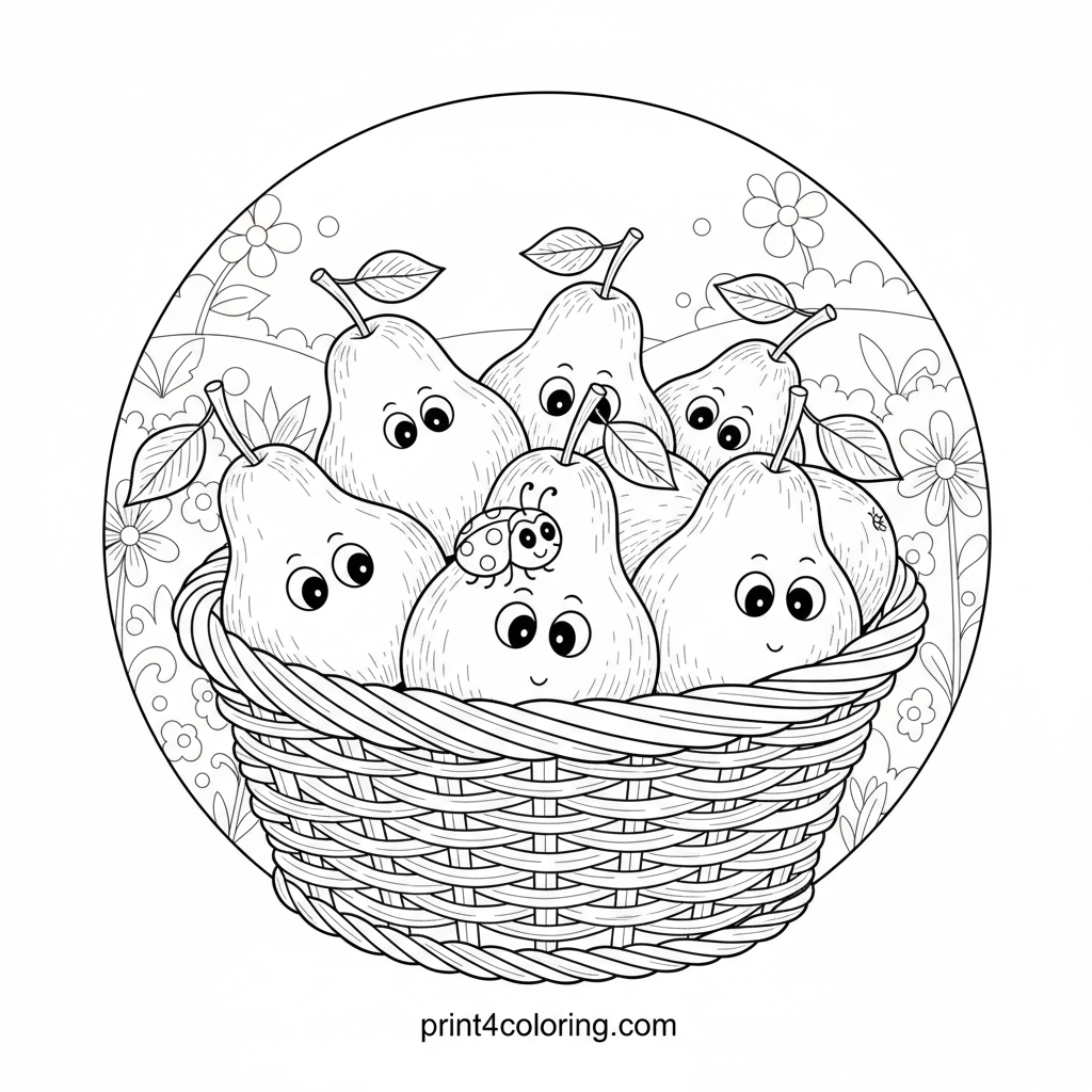 Cozy Harvest: Basket of Ripe Pears Coloring Page