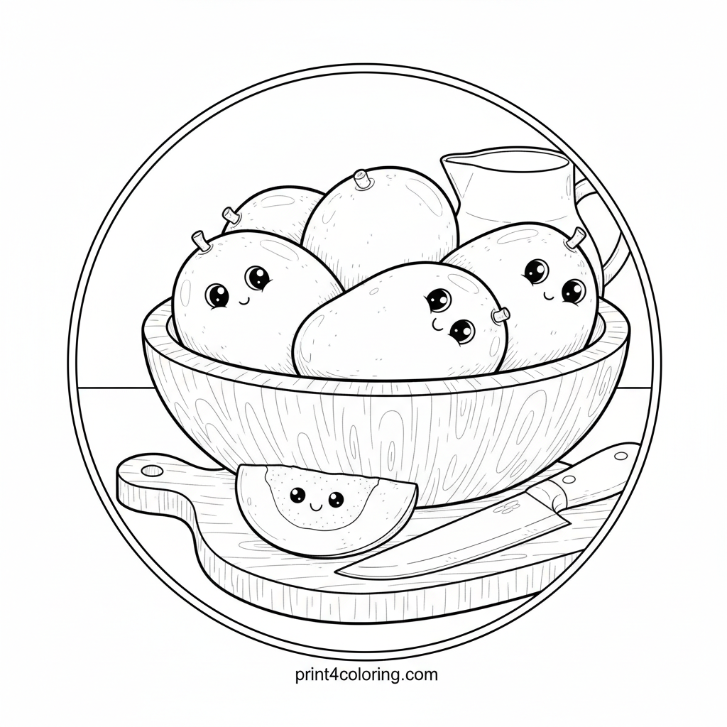 Cozy Mango Kitchen Still Life Coloring Page