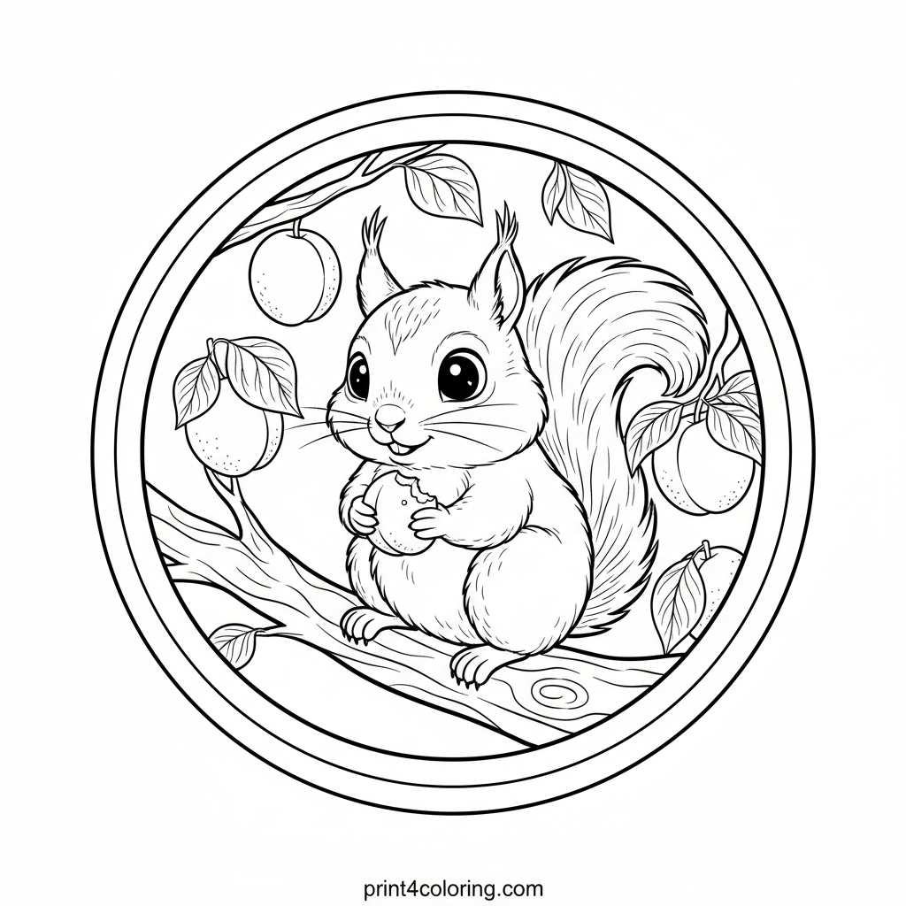 Discover a charming, fluffy-tailed squirrel enjoying a sweet apricot snack! Our furry friend is perched comfortably on a sturdy tree branch, carefully holding a half-eaten apricot. Detailed leaves and more whole apricots hang nearby, creating a cozy and delightful scene perfect for coloring.