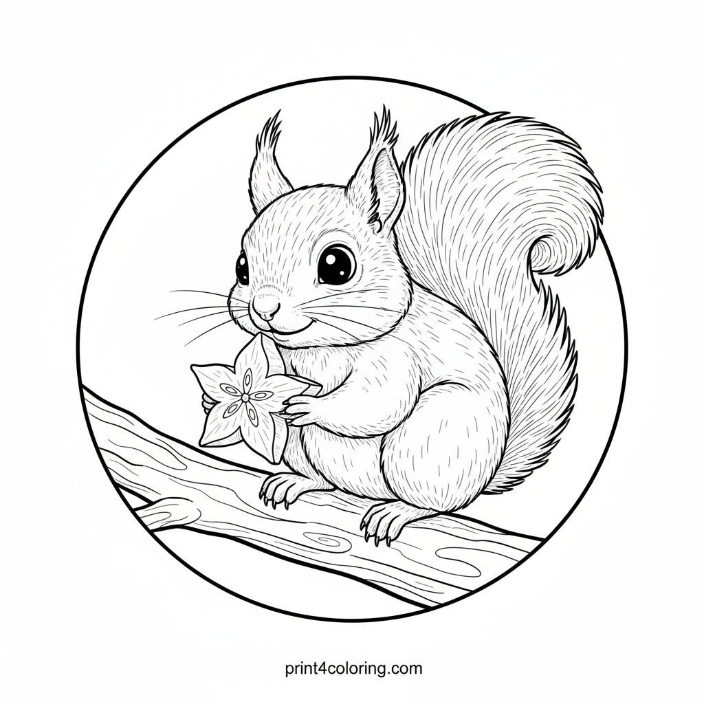 Cozy Squirrel's Star Fruit Snack Coloring Page