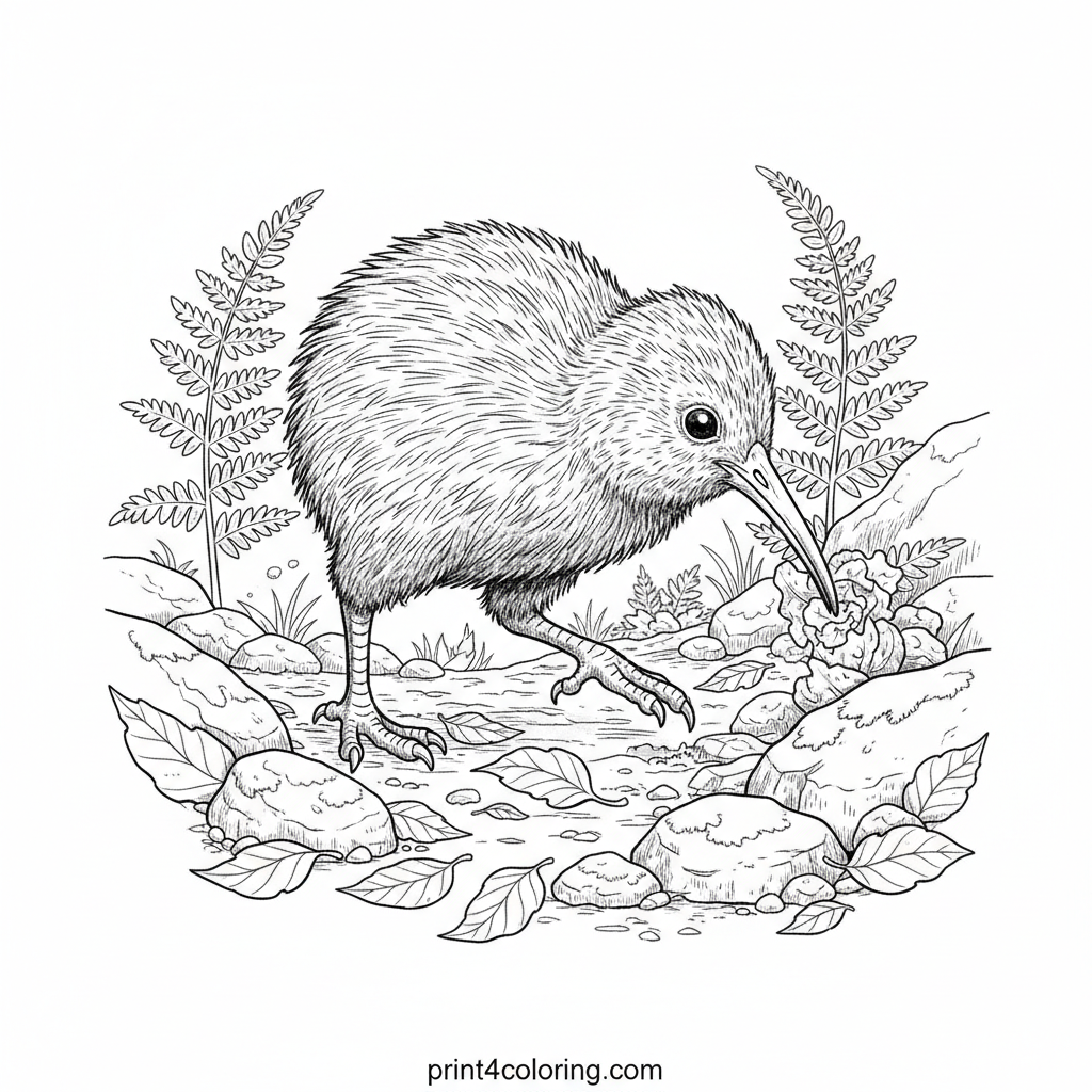 #kiwi-bird#new-zealand#forest#nature#nocturnal#foraging#wildlife#coloring-page#printable