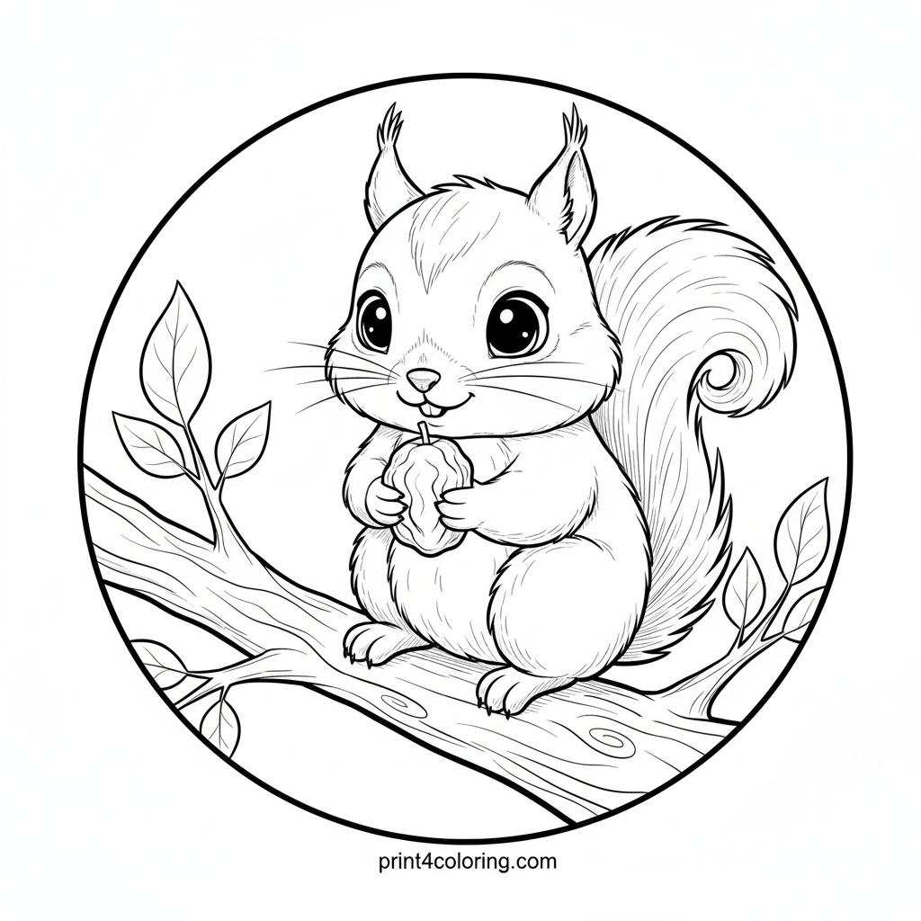 The Curious Squirrel and His Wrinkled Treat Coloring Page