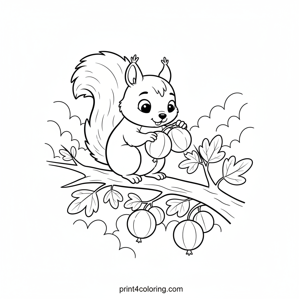 Curious Squirrel's Gooseberry Discovery Coloring Page