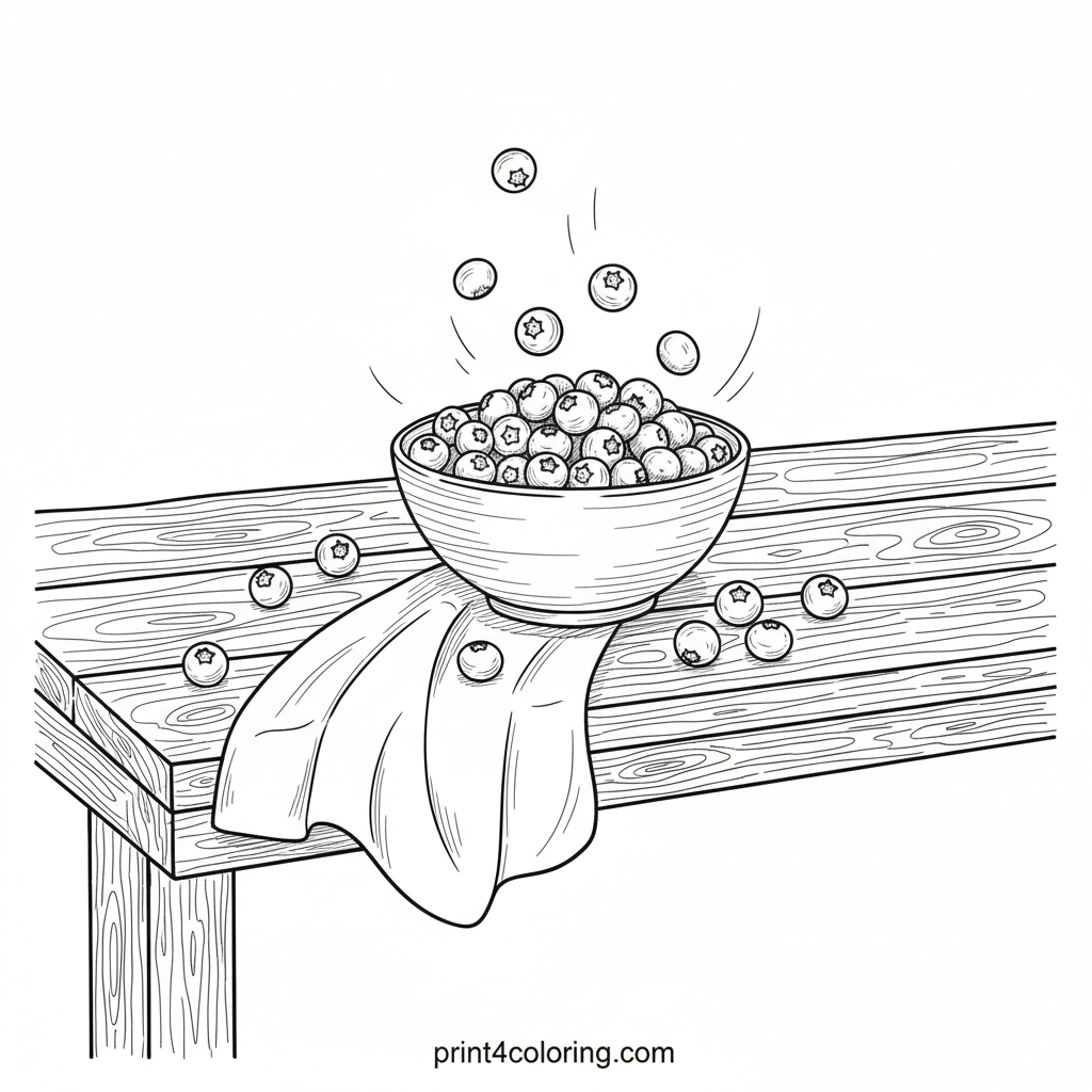Immerse yourself in a detailed farm harvest! This expert coloring page showcases a rustic wooden table with a ceramic bowl overflowing with freshly picked blueberries. Note the scattered berries and soft linen. Challenge yourself to capture the intricate wood grain and the realistic textures of each juicy berry, bringing this beautiful still life to vibrant life.