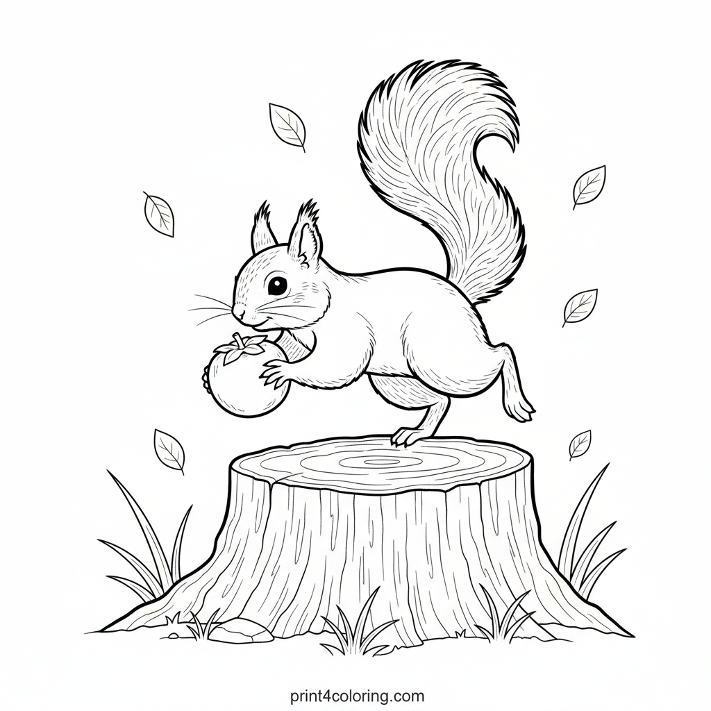 Forest Friend's Sweet Treat: A Squirrel's Persimmon Delight Coloring Page