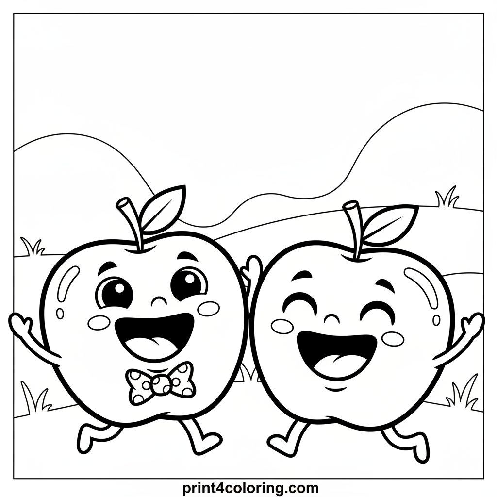 Giggling Apple Buddies Rolling Downhill! Coloring Page
