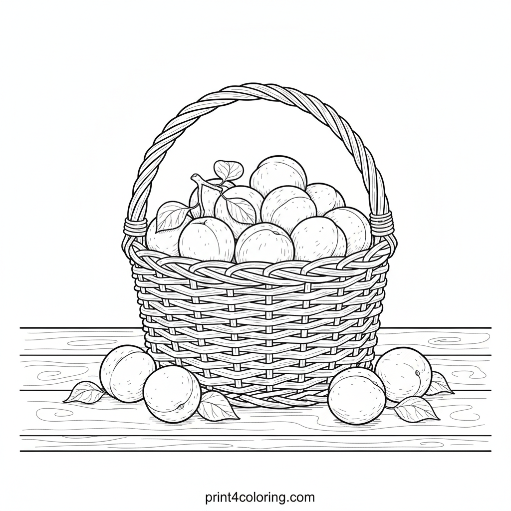 Golden Apricot Harvest Basket Coloring Page