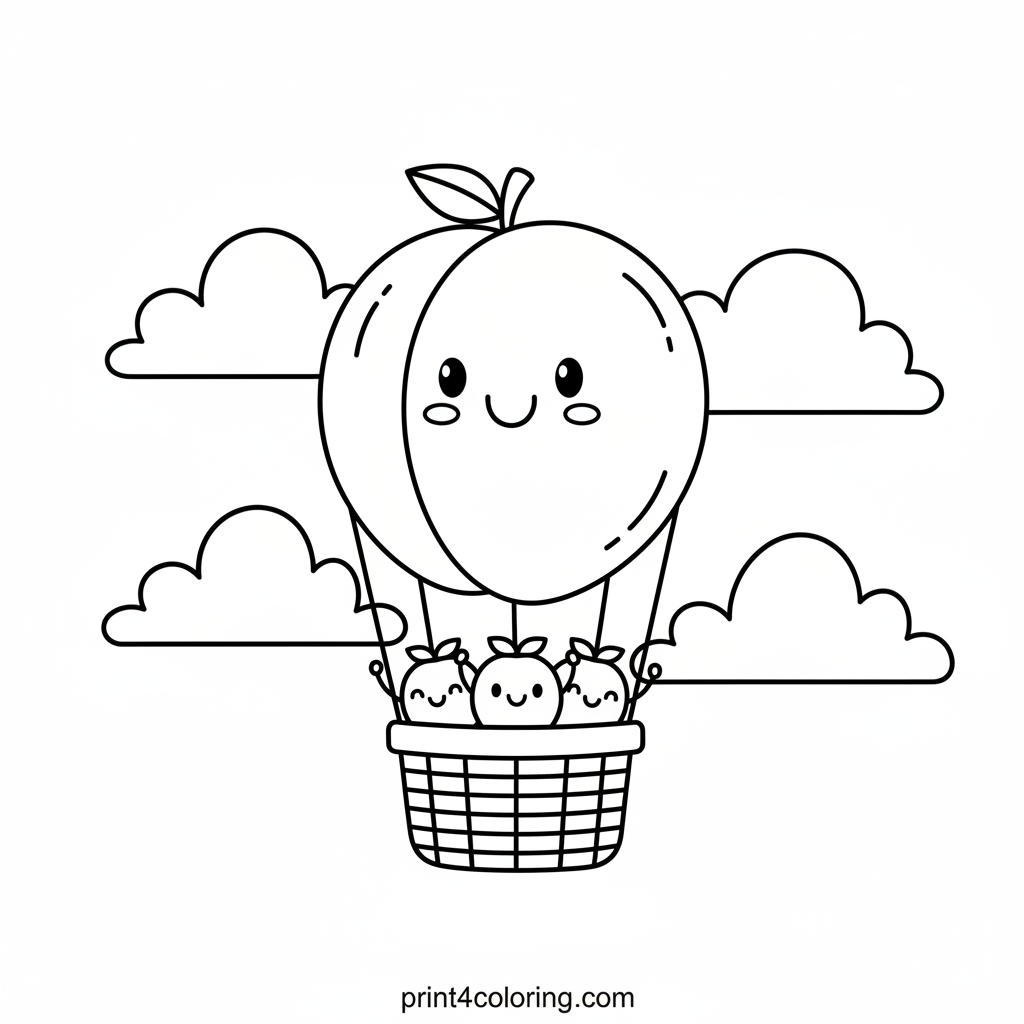 #apricot#hot-air-balloon#fruit#sky#clouds#adventure#cute#fantasy#easy#coloring-page#printable
