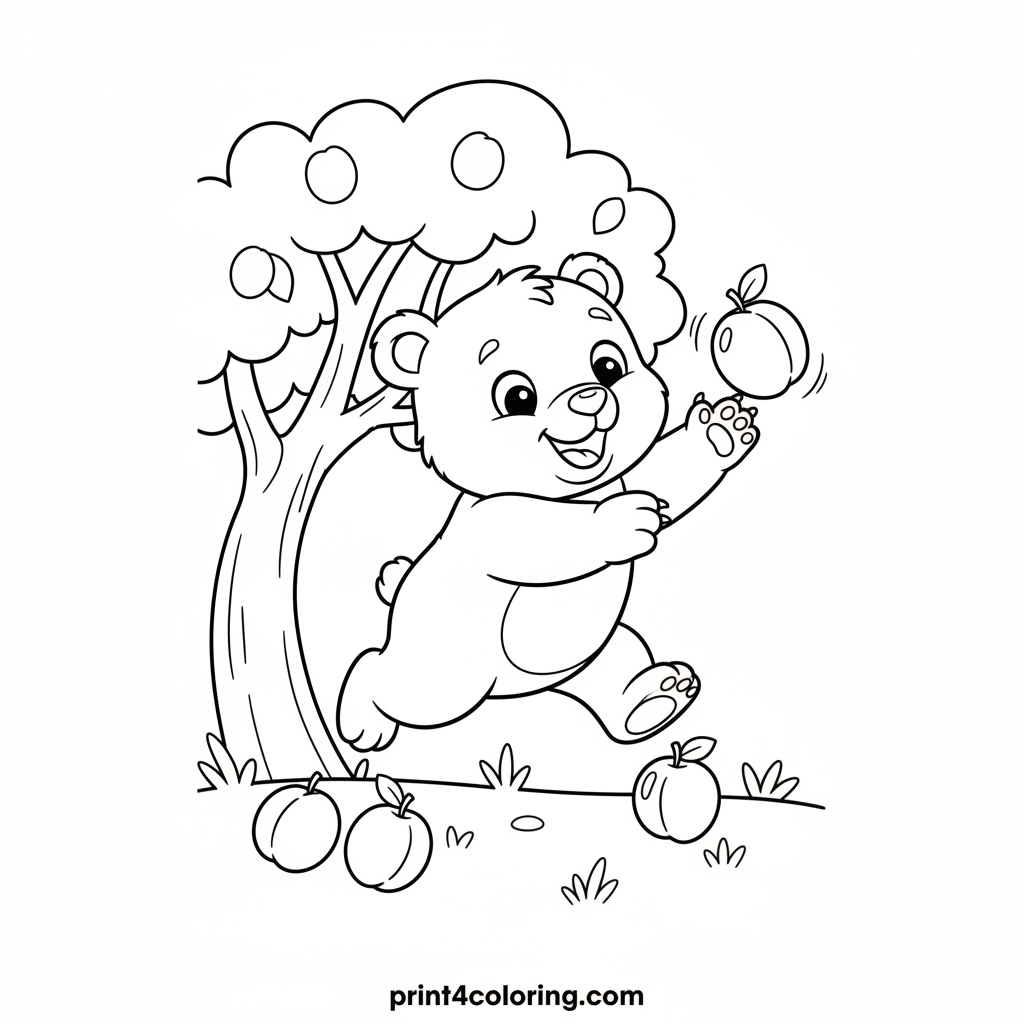 Join a happy little bear cub under a plum tree for a delightful picnic! This cheerful cub with big, friendly eyes is enjoying a sweet, juicy plum, while more yummy plums rest on the soft grass. Get ready to add vibrant colors to this adorable scene and bring this sweet moment to life!