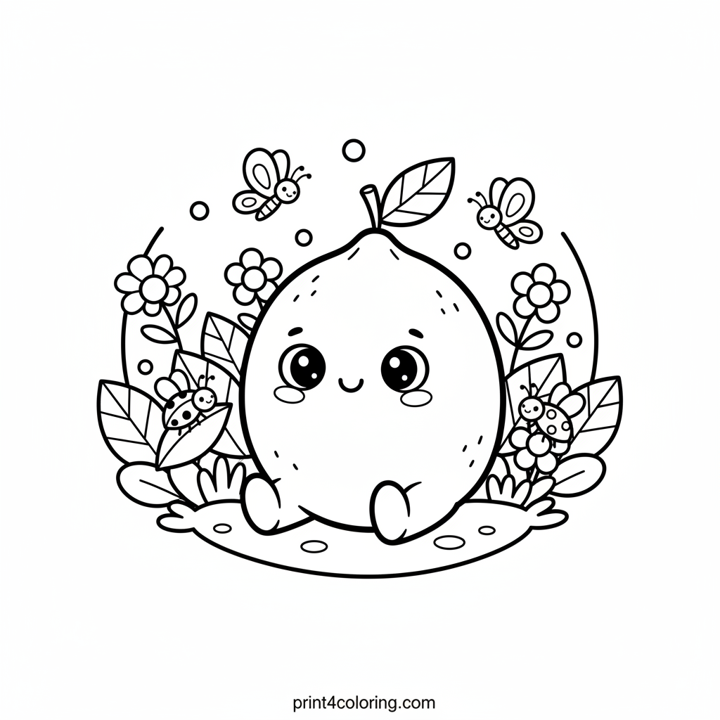 Join Happy Lime in a delightful garden adventure! This cheerful lime character, with big friendly eyes and a warm smile, is enjoying a peaceful day. He's surrounded by adorable, smiling ladybugs and graceful butterflies, all ready for you to bring them to life with your favorite colors. A perfect scene for a relaxing coloring time!