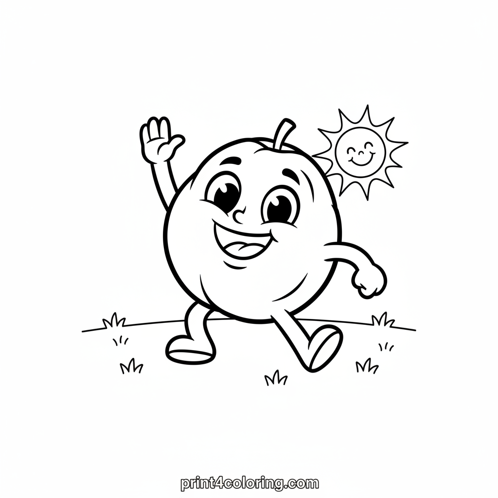 #prune#happy#fruit#character#waving#sunny#field#easy#coloring-page#printable