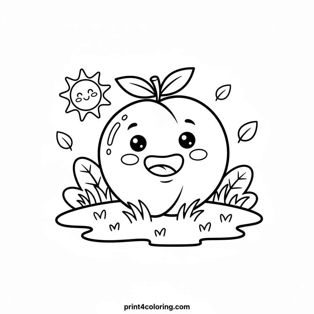 Get ready to color a super cheerful peach! This friendly fruit has a big, warm smile, adorable rosy cheeks, and a tiny green leaf waving hello from its top. Imagine this sweet pal brightening your day with its happy face, ready for you to bring it to life with vibrant colors and joyful shades.