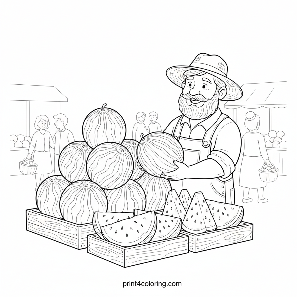 Harvest Happiness: Watermelon Wonders at the Farmer's Market Coloring Page