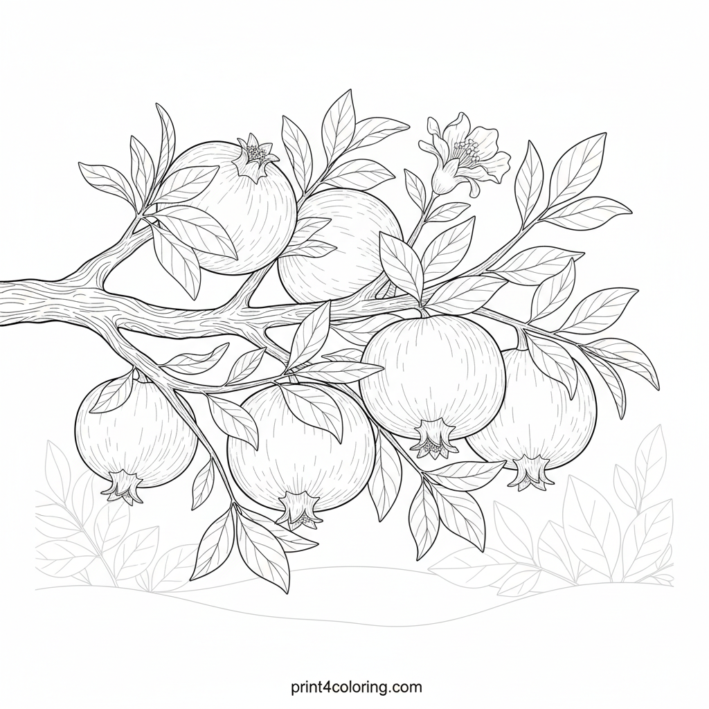 Intricate Pomegranate Branch Coloring Page