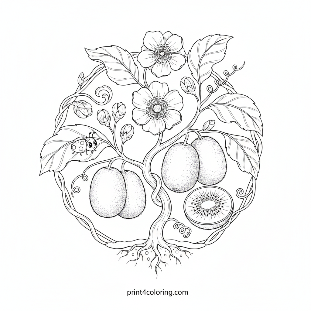 Life on the Kiwi Vine: A Botanical Journey Coloring Page