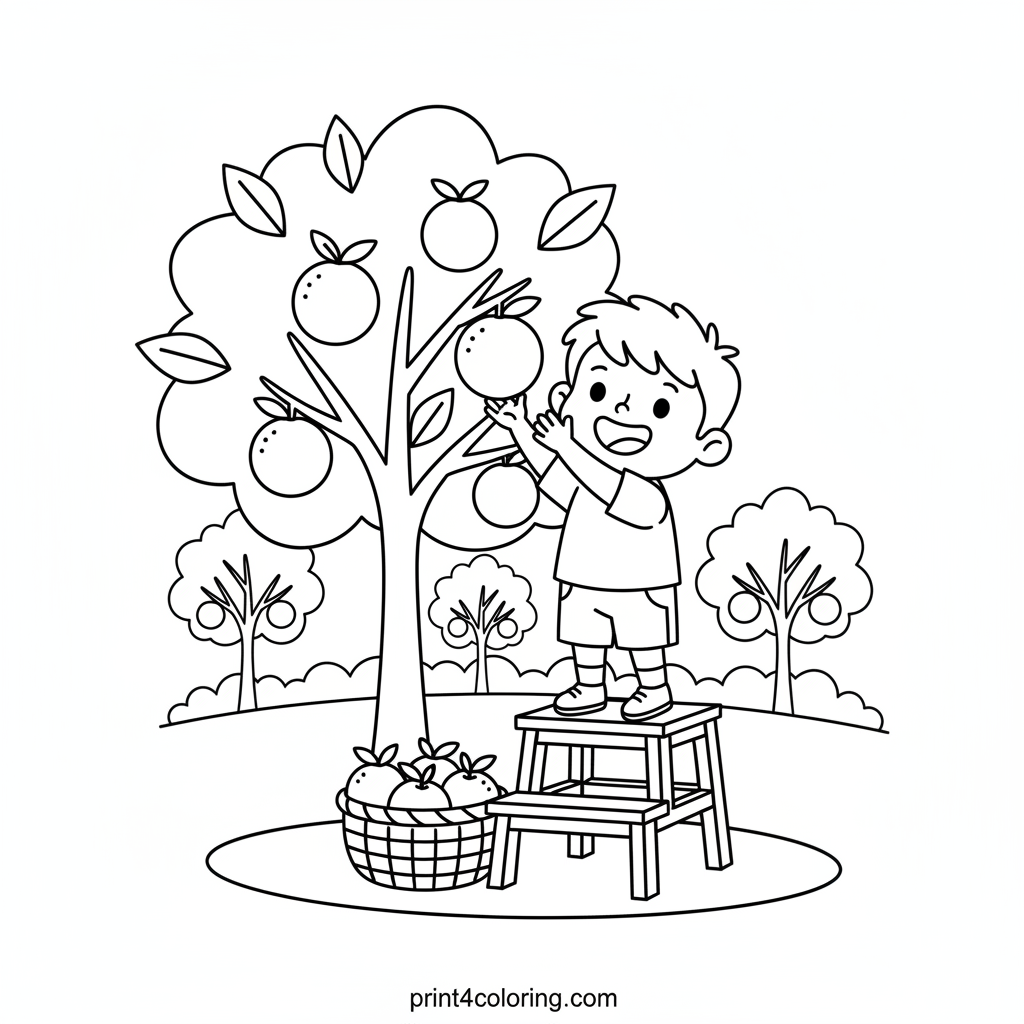 Little Harvester's Orange Orchard Adventure Coloring Page