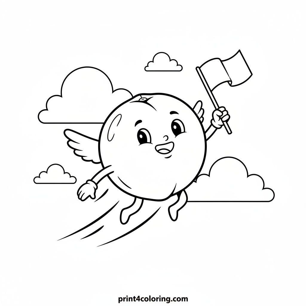 #nectarine#fruit#flying#clouds#adventure#happy#cartoon#coloring-page#printable