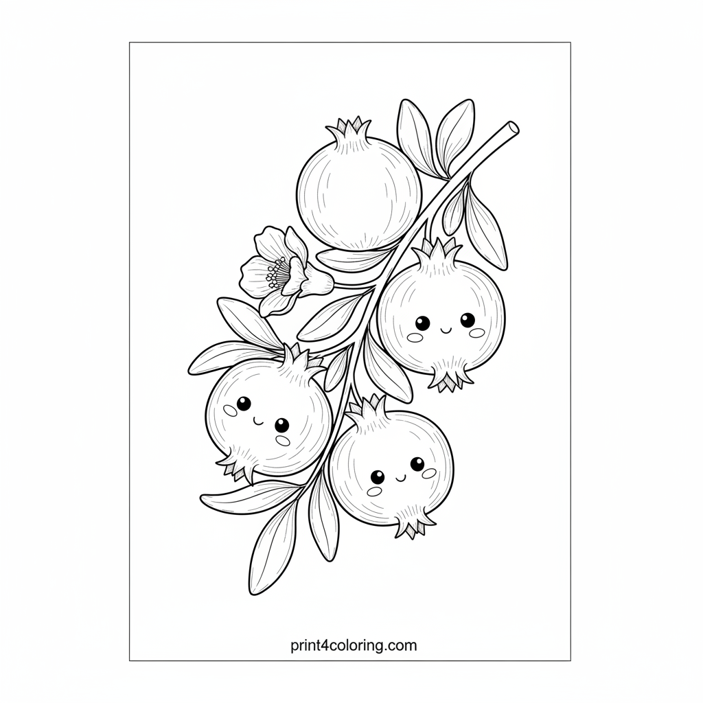 Pomegranate Paradise: A Cozy Harvest Branch Coloring Page