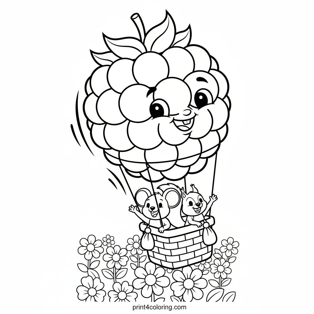 Raspberry Hot Air Balloon Adventure Coloring Page
