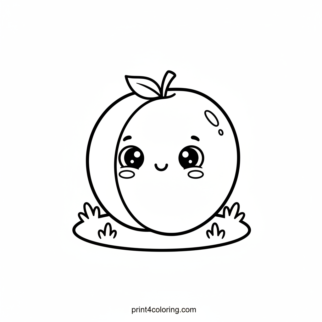 Meet your new adorable apricot friend, beaming with a big, happy smile and sparkling joyful eyes! This super cute, round fruit wears a tiny green leaf hat and sits cheerfully in a cozy patch of wavy grass. Grab your crayons and bring this delightful, easy-to-color scene to life with your favorite bright colors!