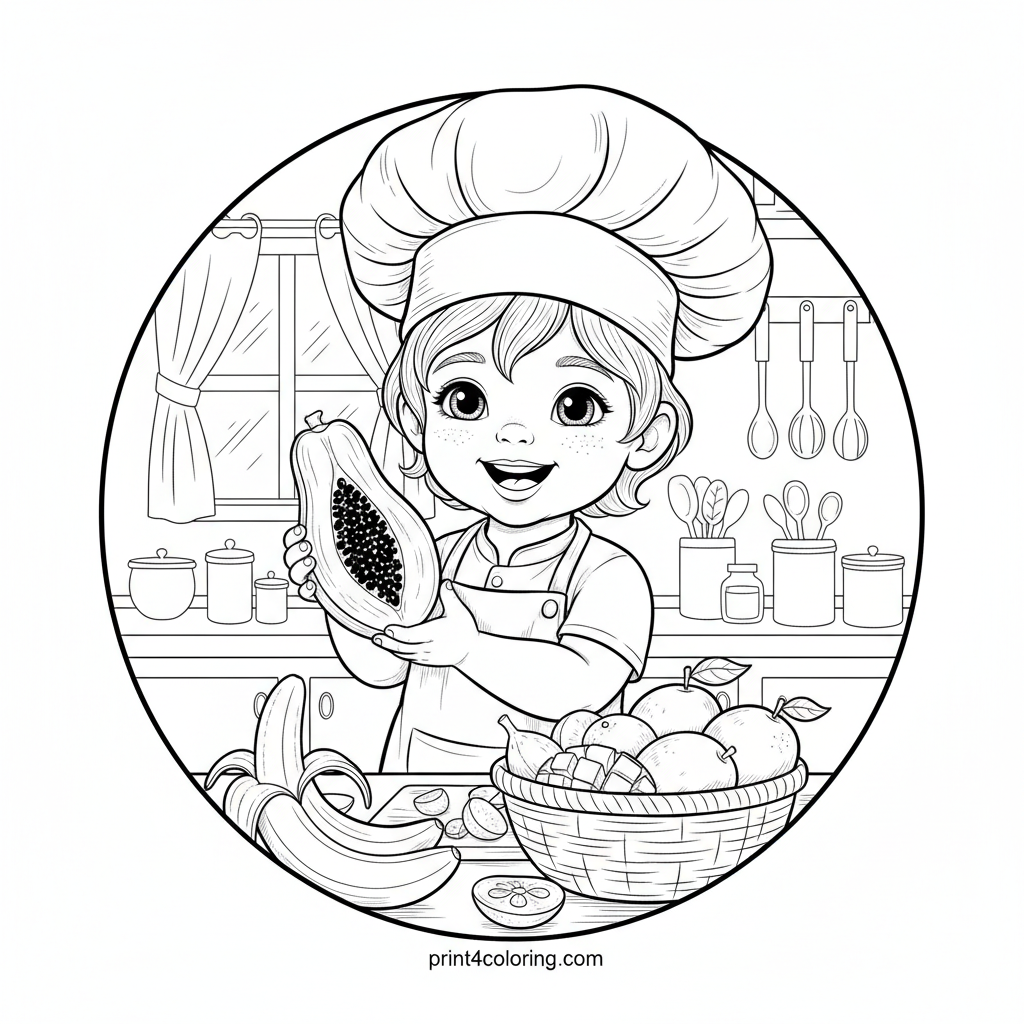 #little-chef#tropical-fruit#papaya#kitchen#child-cooking#healthy-food#coloring-page#printable
