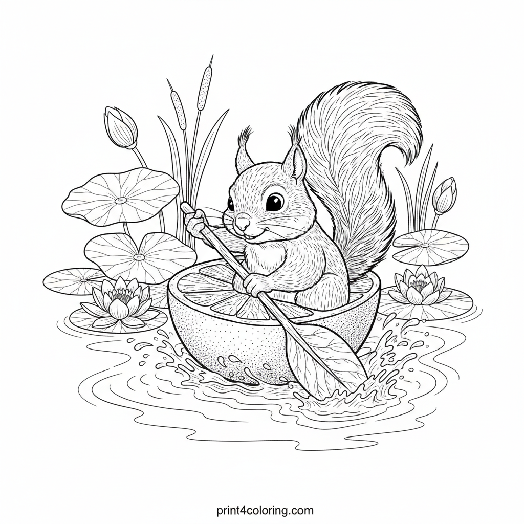 #squirrel#grapefruit#boat#pond#adventure#nature#water-lilies#leaf#action-pose#coloring-page#printable