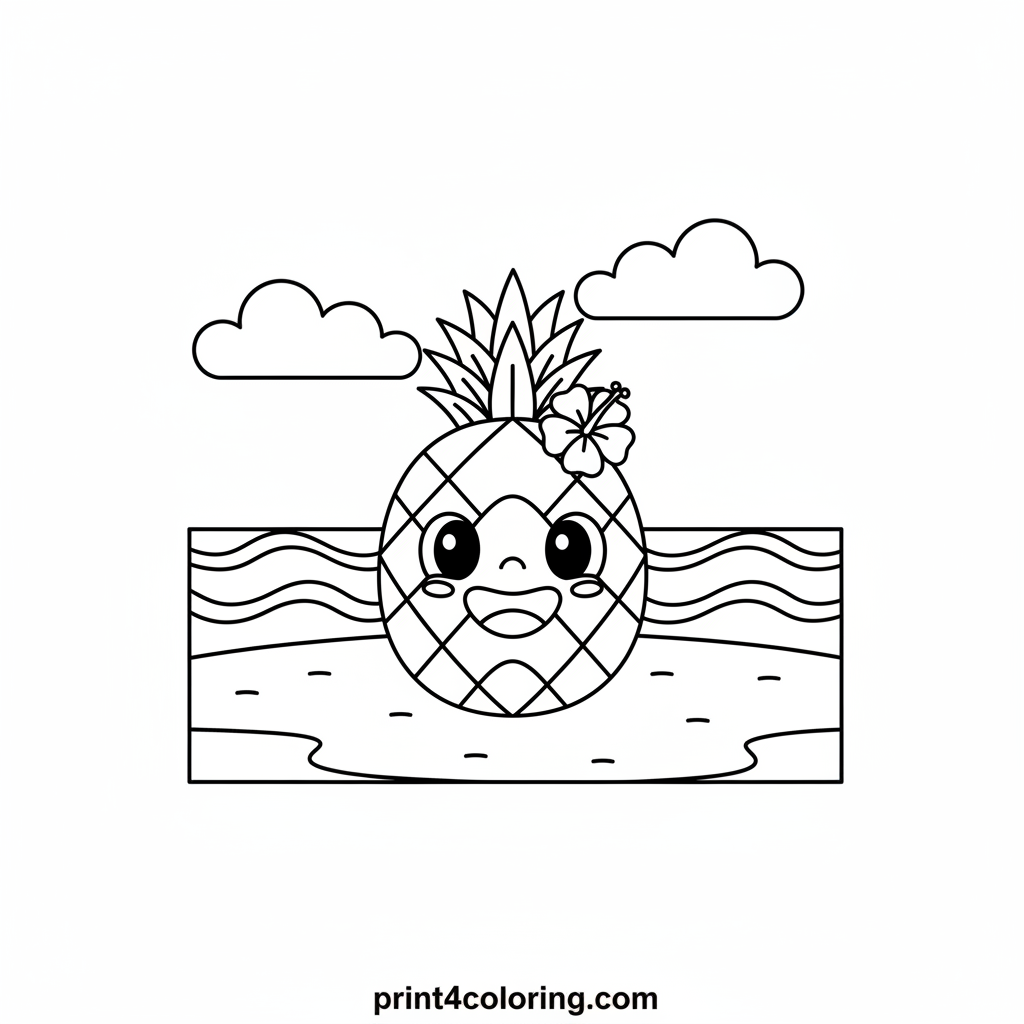 Sunny Pineapple Pal's Beach Adventure Coloring Page