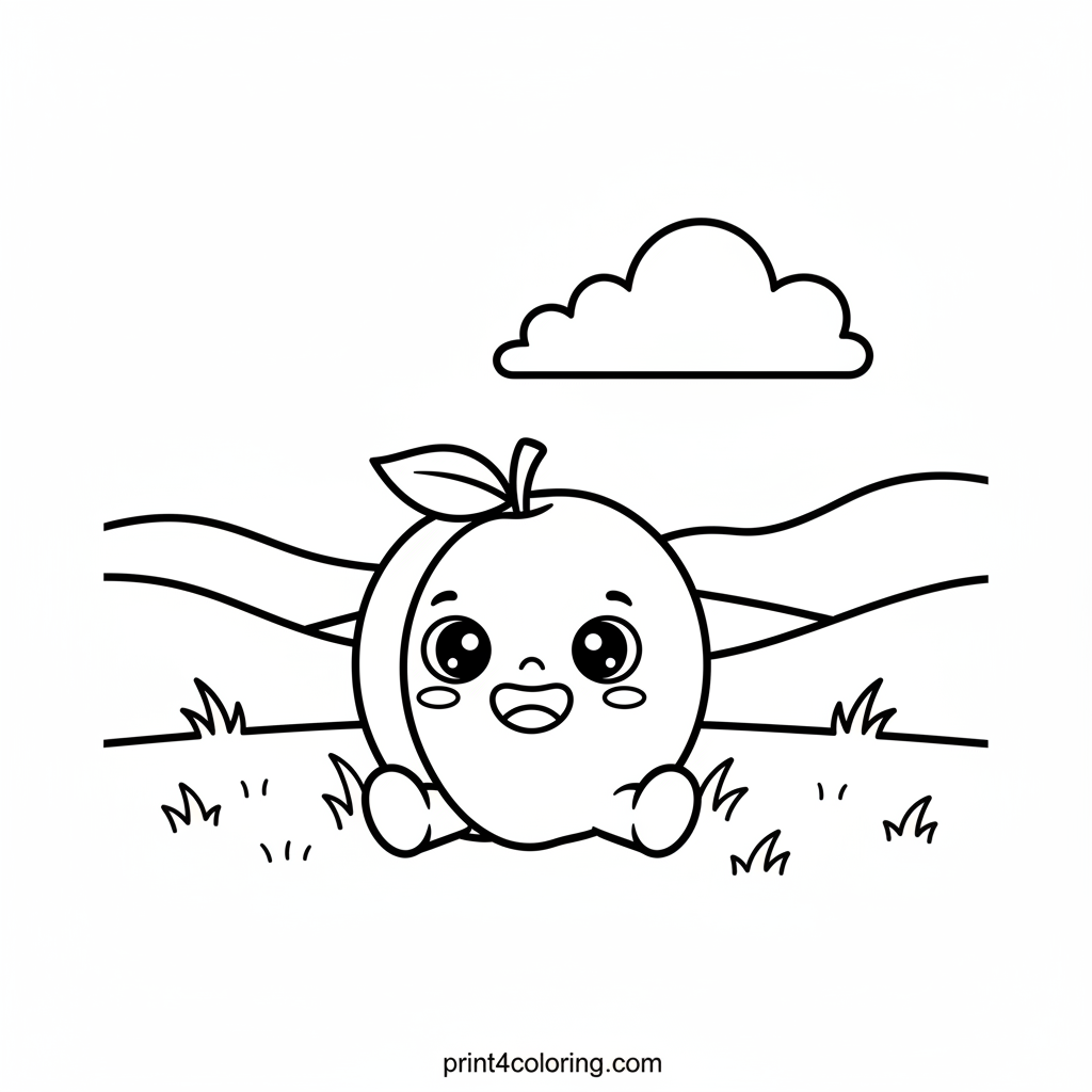 Meet our adorable apricot friend, beaming with joy in a cozy patch of wavy grass! This little fruit has a big, happy smile, bright eyes, and a charming green leaf for a hat. Get ready to bring this cheerful scene to life with your favorite colors, making the apricot and its grassy home vibrant and fun!