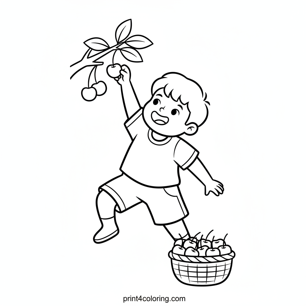 #cherry#picking#fruit#tree#child#summer#harvest#garden#coloring-page#printable