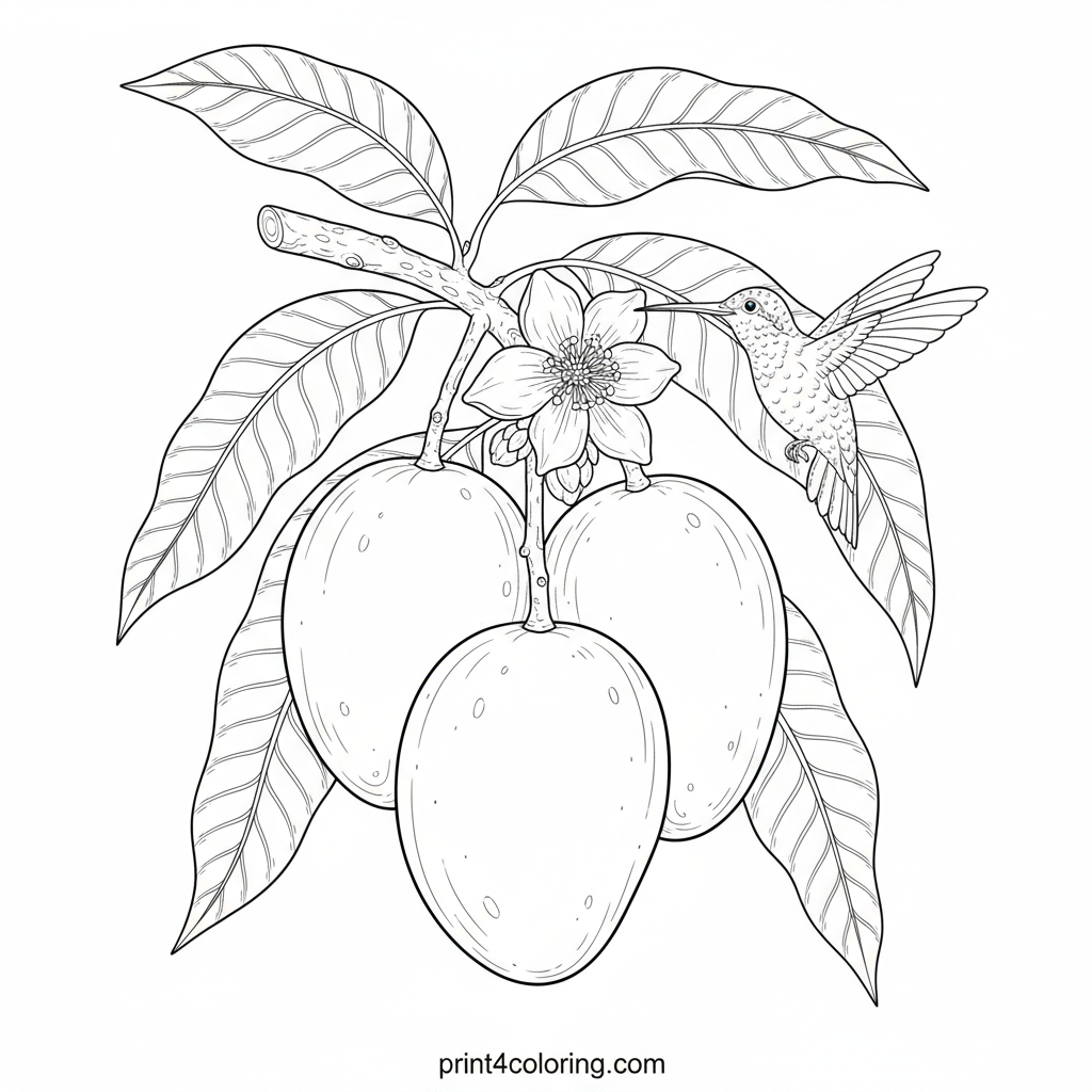 Sweet Mango & Hummingbird Harvest Coloring Page