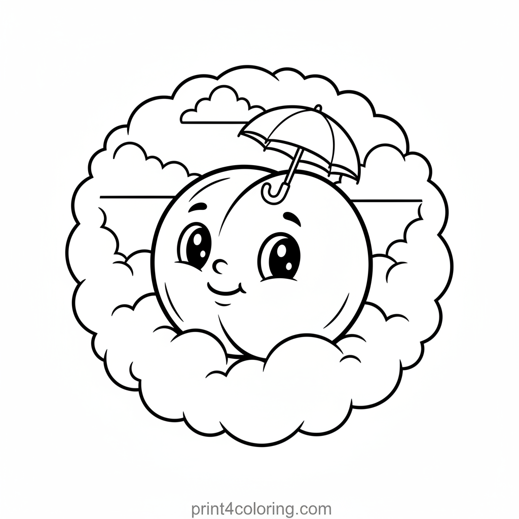 Join a cheerful, friendly peach as it drifts through a bright, sunny sky! With a cute little umbrella providing shade, this happy peach is having the most relaxing day, gently floating on soft, puffy clouds. Imagine all the warm, happy colors you can use to bring this cozy scene to life!