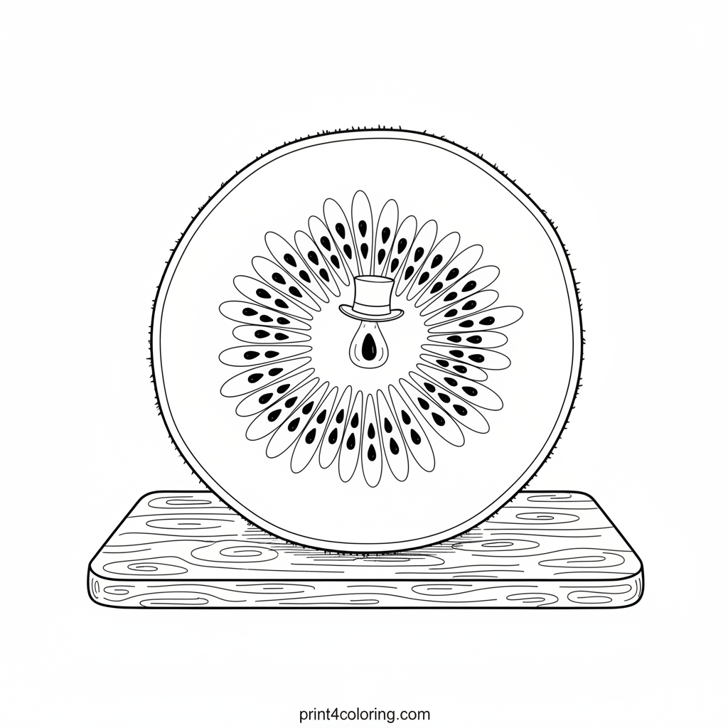 Get ready to color a super close-up of a perfectly sliced kiwi, showing off all its amazing patterns and tiny seeds! Look closely to find the most charming detail: one little seed is wearing a tiny, fancy top hat, making this kiwi truly a gentleman. A delightful still life for expert colorists!