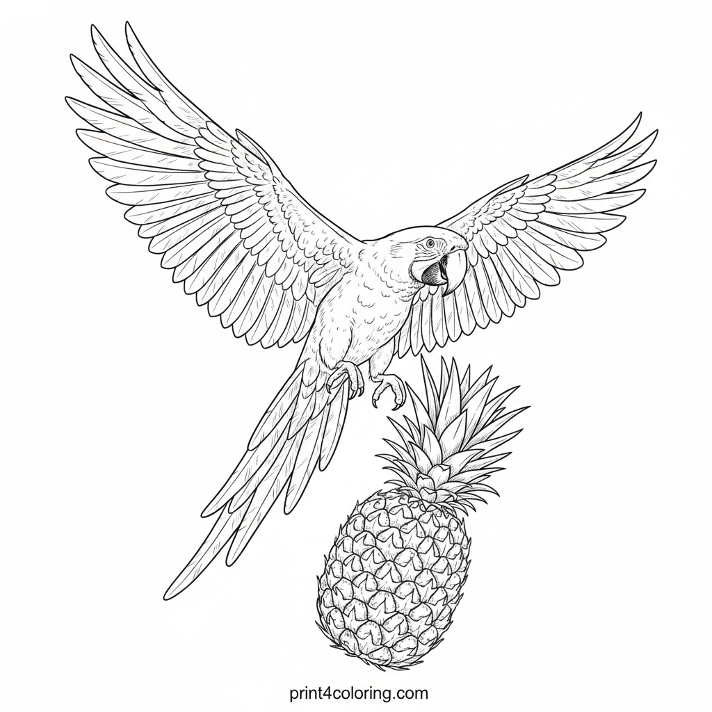 Vibrant Macaw's Pineapple Paradise Coloring Page