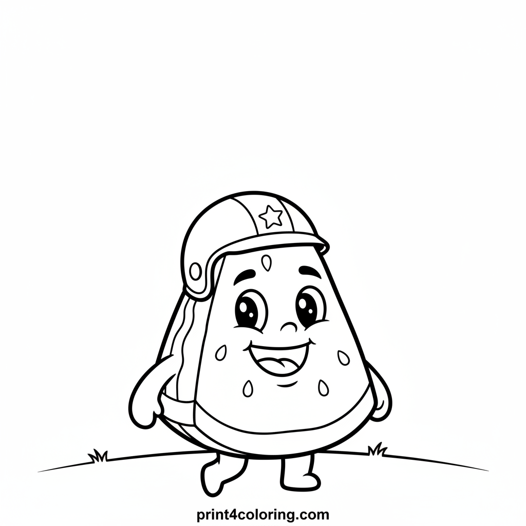 Get ready for a hilarious race! Three happy watermelons, complete with tiny arms and legs, are tumbling down a soft, grassy hill. They're all laughing as they roll, but one has a special little racing helmet to help them win! Grab your colors and bring this funny fruit race to life.