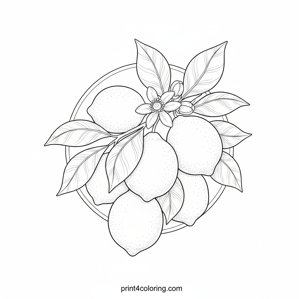 Dive into the intricate beauty of a lemon tree branch! This expert-level coloring page features ripe, textured lemons, glossy leaves with visible veins, and a delicate blossom, all rendered with botanical precision. Explore the cozy details of nature's artistry and bring this vibrant scene to life with your favorite colors.