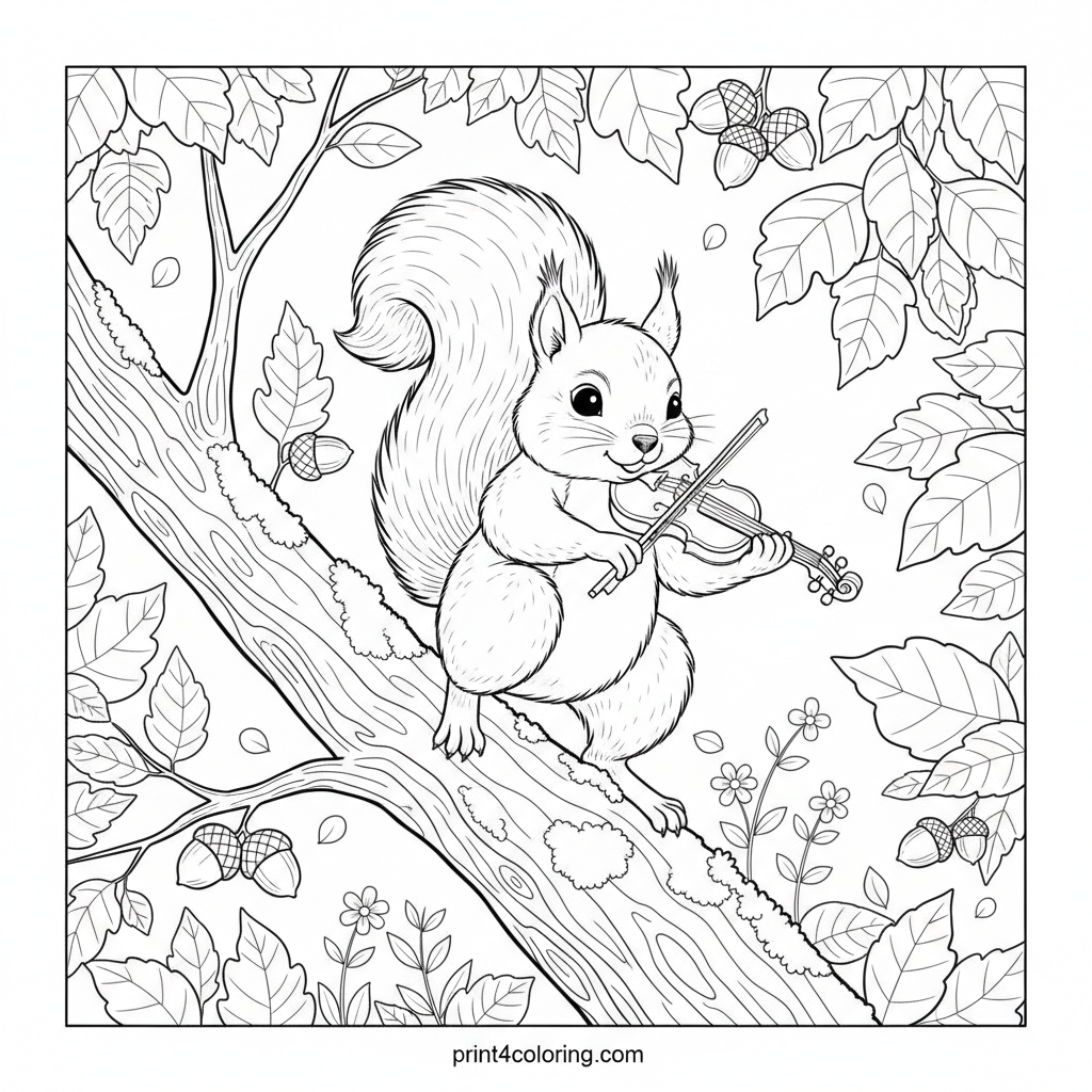 A Squirrel's Forest Serenade Coloring Page