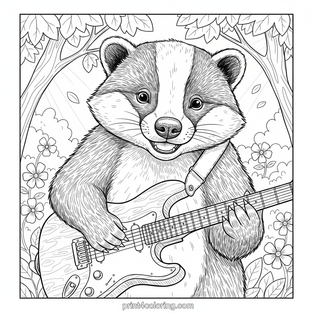 #badger#music#guitar#backyard#nature#animals#rock#jam-session#expert#coloring-page#printable