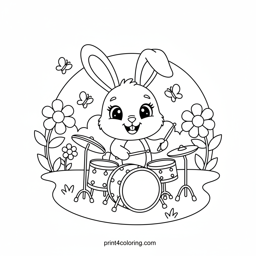 #bunny#rabbit#drums#music#backyard#flowers#butterflies#cute#easy#coloring-page#printable