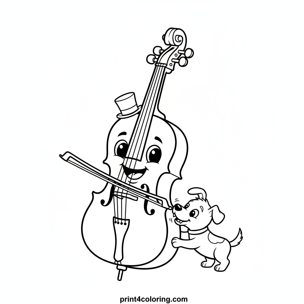 #cello#music#instrument#puppy#dog#wagon#adventure#friendly#kids#coloring-page#printable