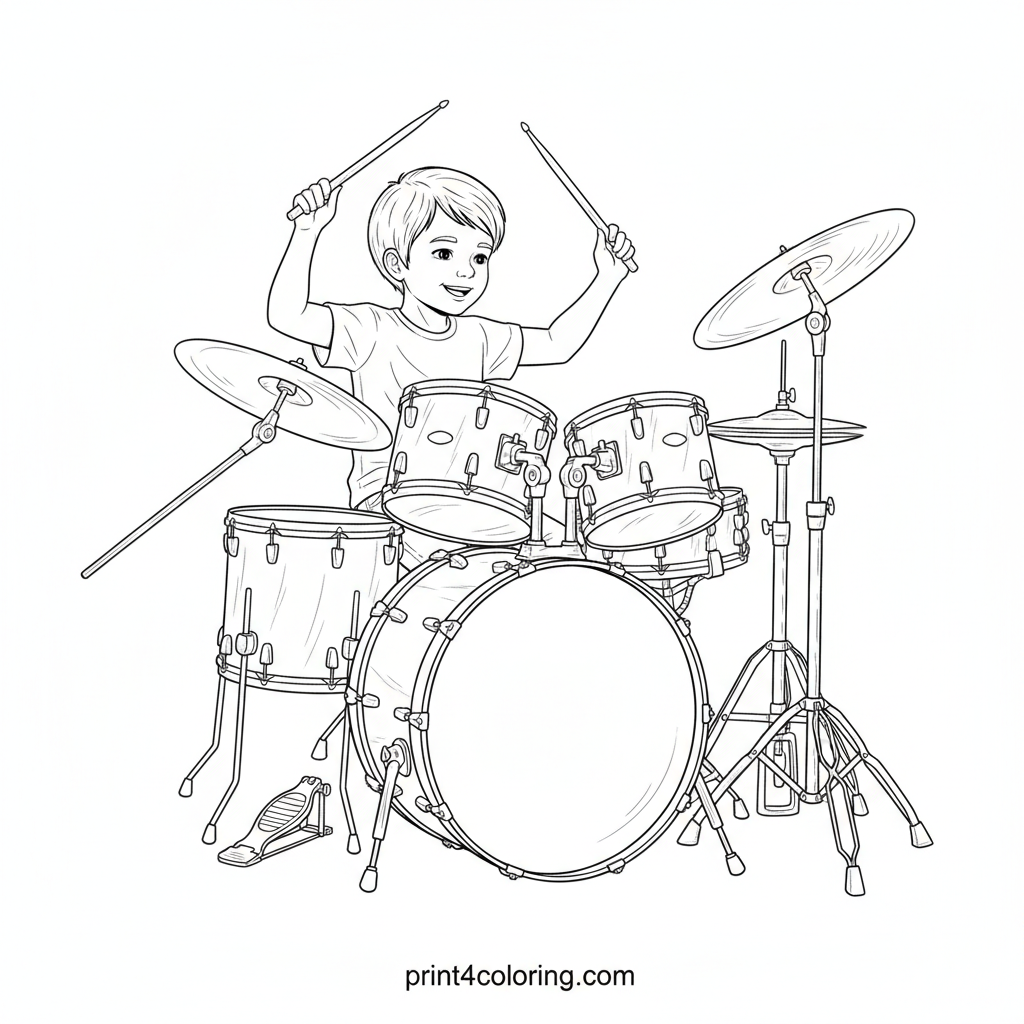 #drummer#drums#music#child#action#musical-instrument#rhythm#percussion#performance#coloring-page#printable