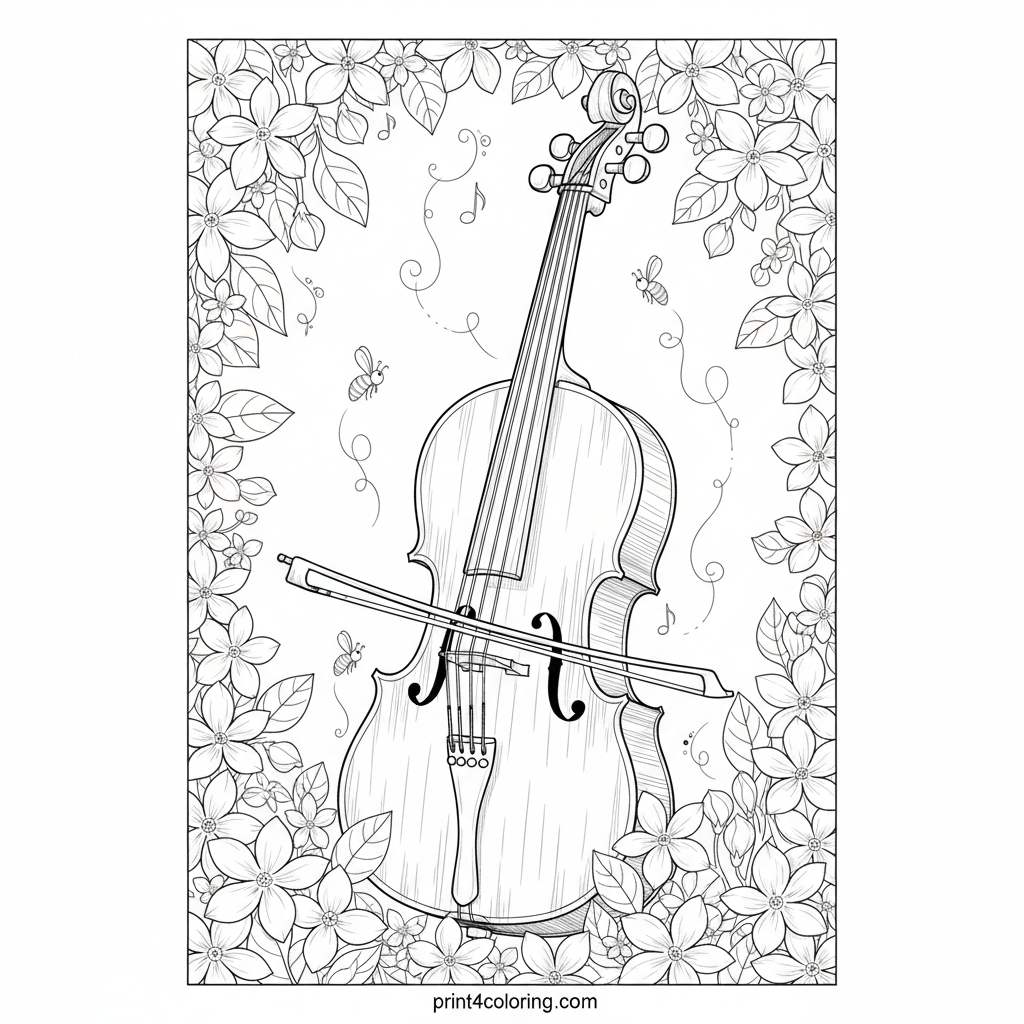 Step into a magical moonlit garden where a majestic cello awaits your colors! Delicate musical notes dance around intricate night-blooming jasmine and glowing fireflies. This enchanting scene invites you to bring its serene beauty to life, focusing on the detailed instrument and luminous flora under the gentle moonlight. A truly dreamlike coloring adventure!