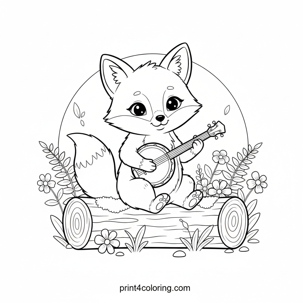 Forest Fox's Cozy Banjo Serenade Coloring Page