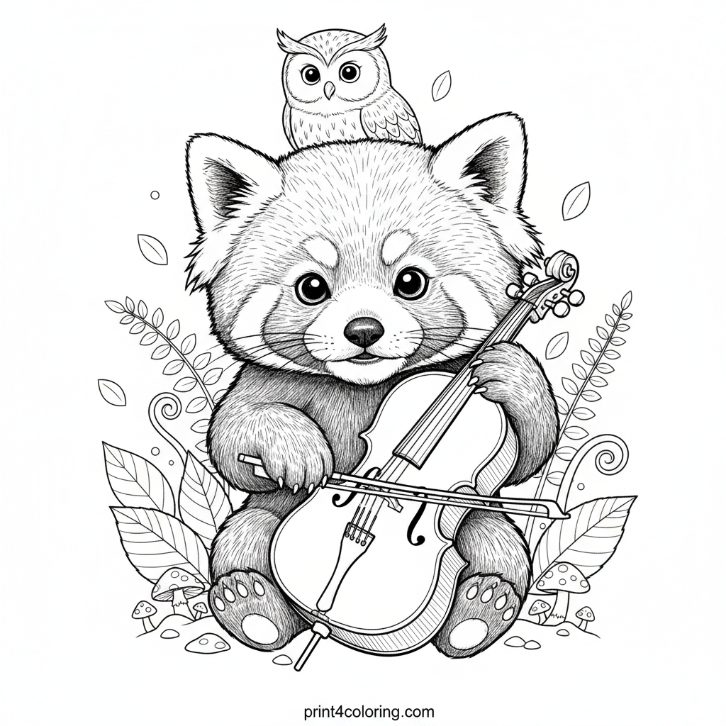 #red-panda#cello#music#forest#owl#cute-animals#nature#musical-instruments#woodland#coloring-page#printable