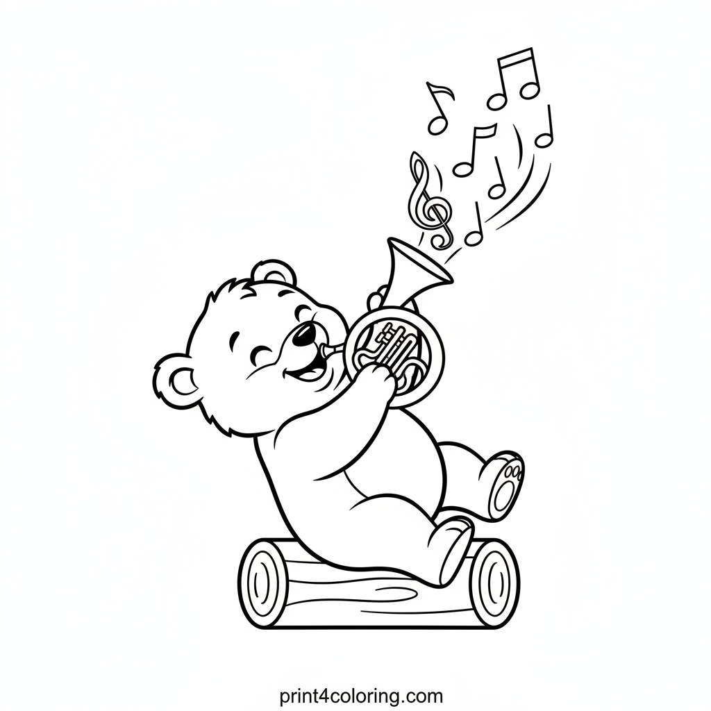 Happy Bear Cub's French Horn Serenade Coloring Page