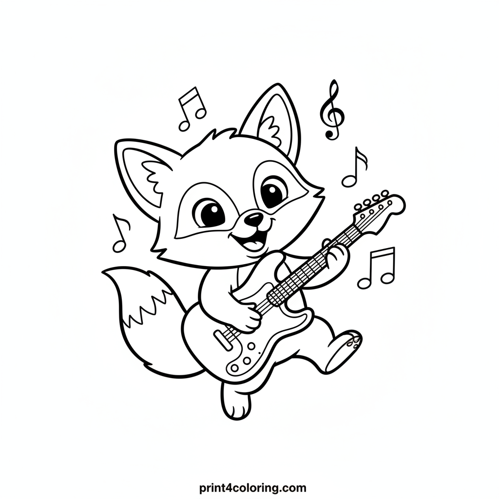 Get ready to rock with our cute baby fox! This little fella is making music for the very first time, happily strumming a bright electric guitar. Watch as musical notes dance around, celebrating its exciting debut. Grab your crayons and add vibrant colors to this foxy rock star's special moment!