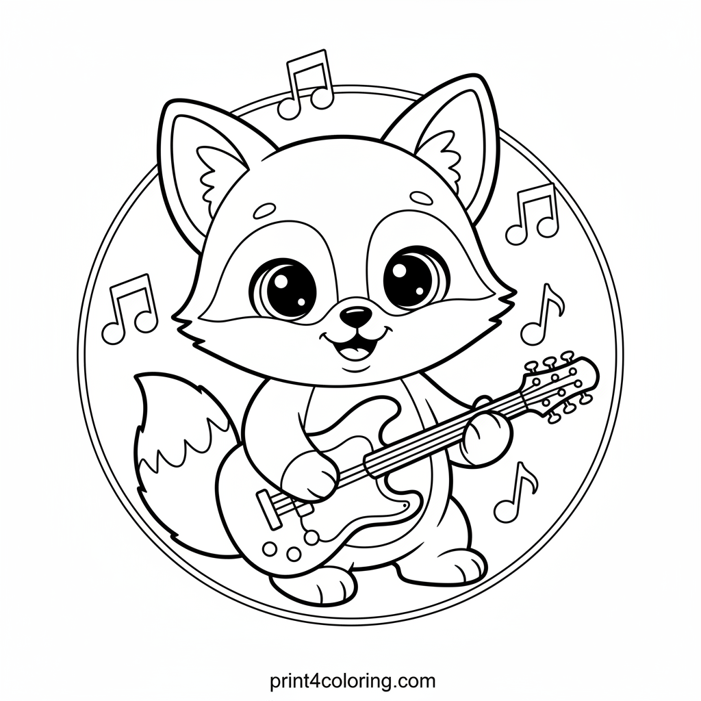 #fox#baby fox#guitar#music#musical instrument#cute#animal#easy#coloring-page#printable