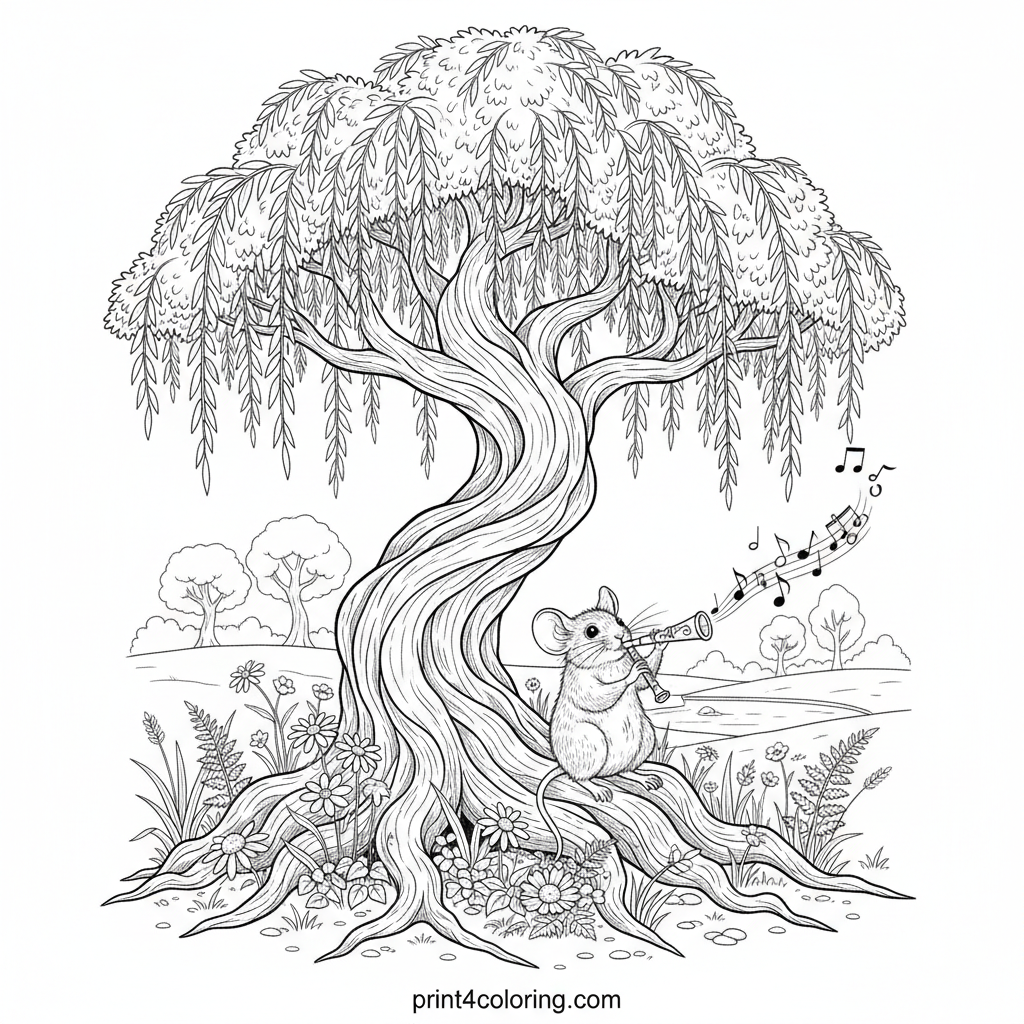 Melodies of the Whispering Willow: A Musical Mouse's Serenade Coloring Page