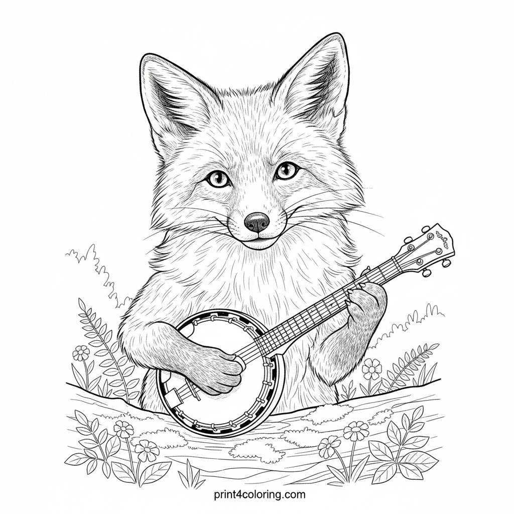 Melody in the Woods: Forest Fox's Banjo Serenade Coloring Page