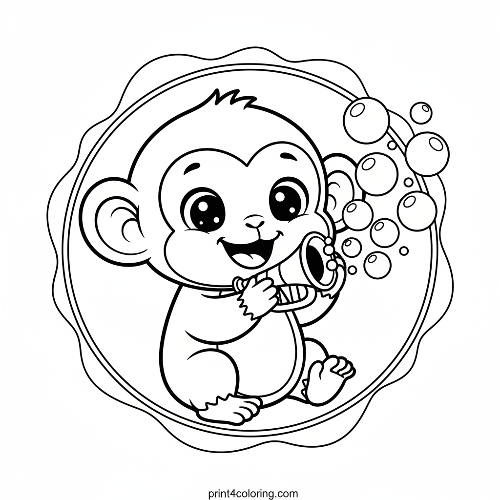 Get ready for a giggle with this adorable monkey! Our playful friend is playing a trumpet, but instead of music, a cascade of shiny, round bubbles is playfully gushing out! Watch its wide grin and surprised, happy eyes as it discovers its unique bubbly talent. A truly delightful scene perfect for little artists!