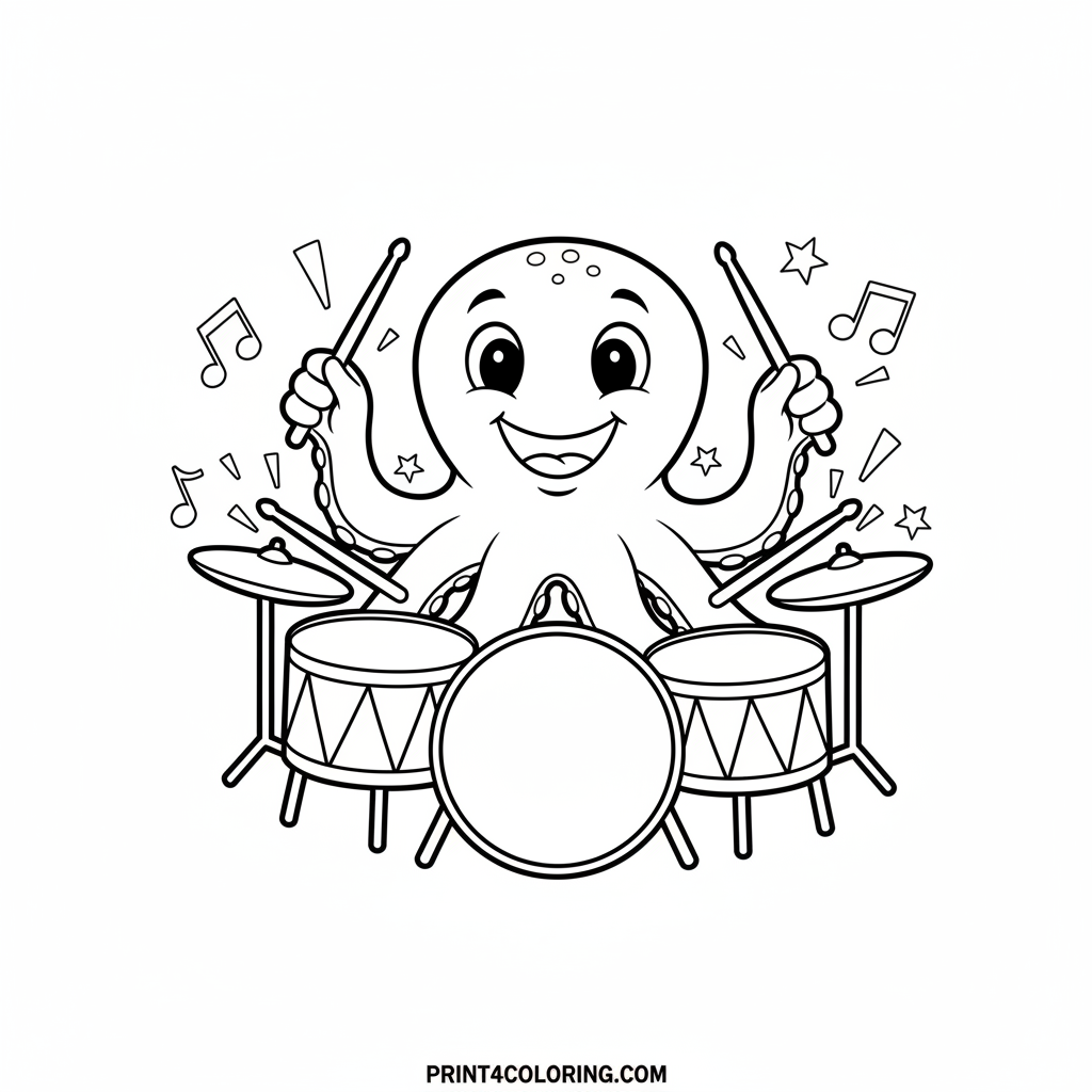#octopus#drummer#music#ocean#sea#animal#cartoon#musical-instrument#coloring-page#printable